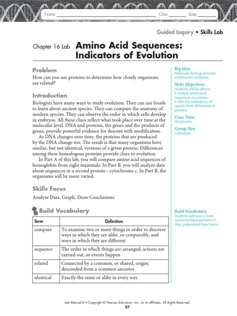Reading Online Evolution Lab - Amino Acids - Olympia High School - Ohs Doc